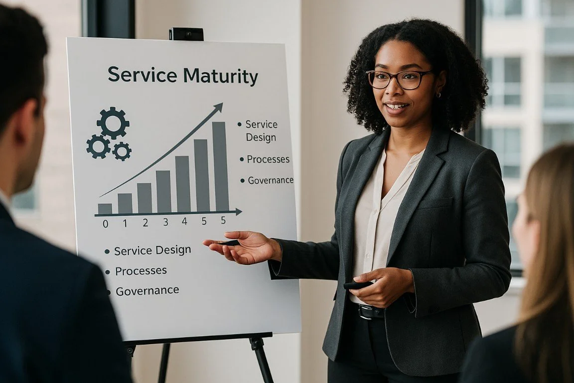 Service Maturity Assessments (0–5 scale) with targeted improvement plans